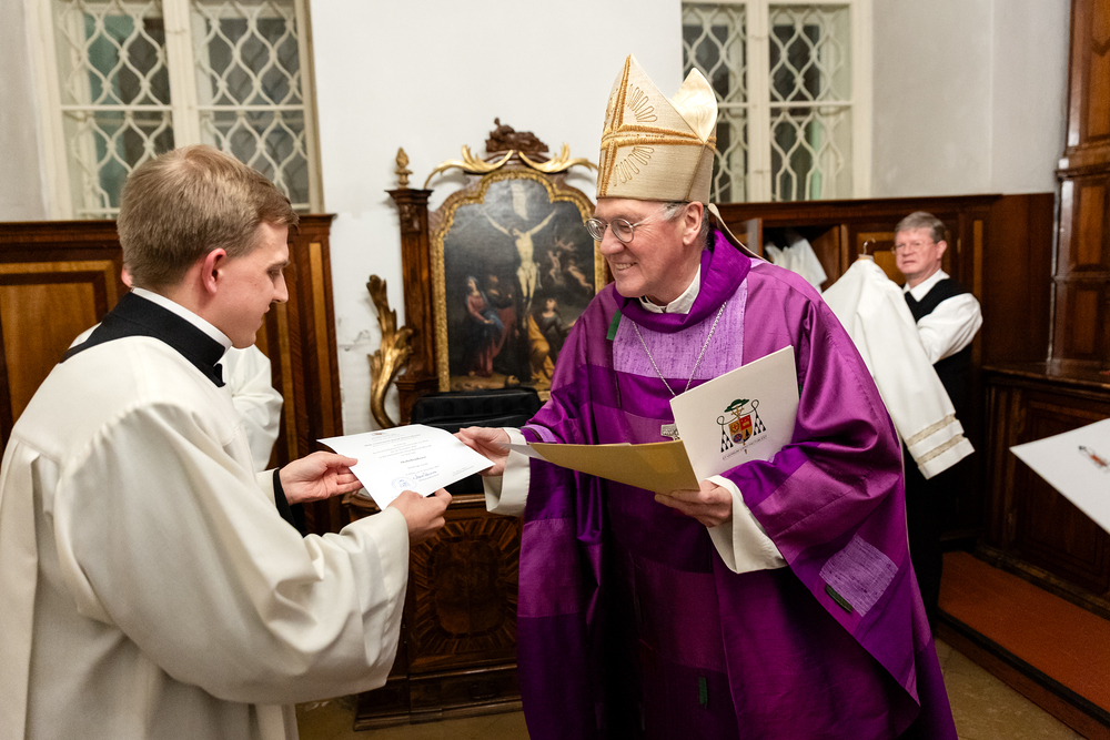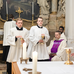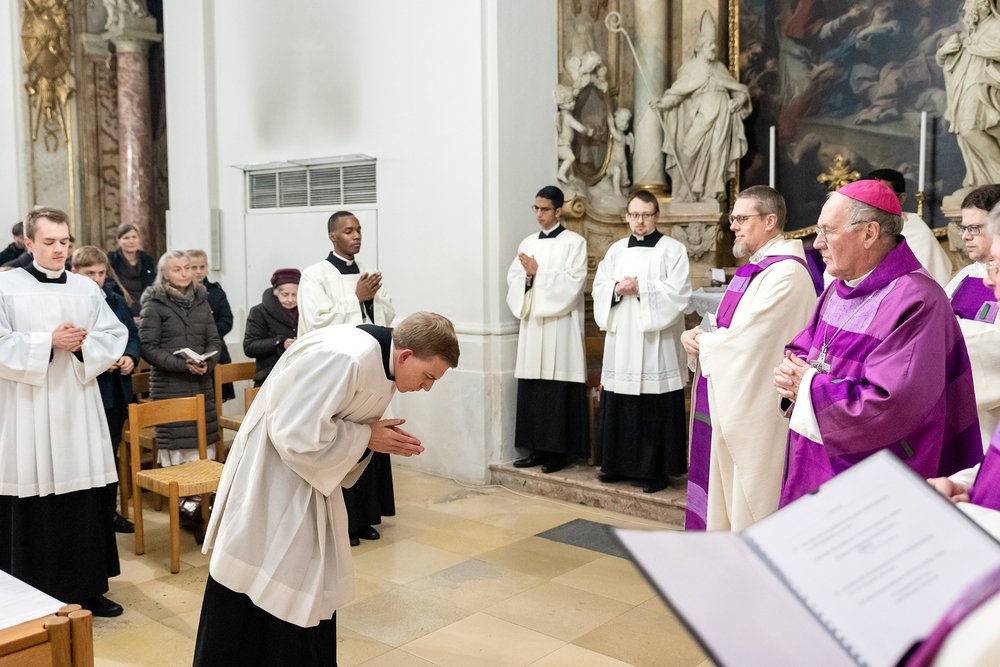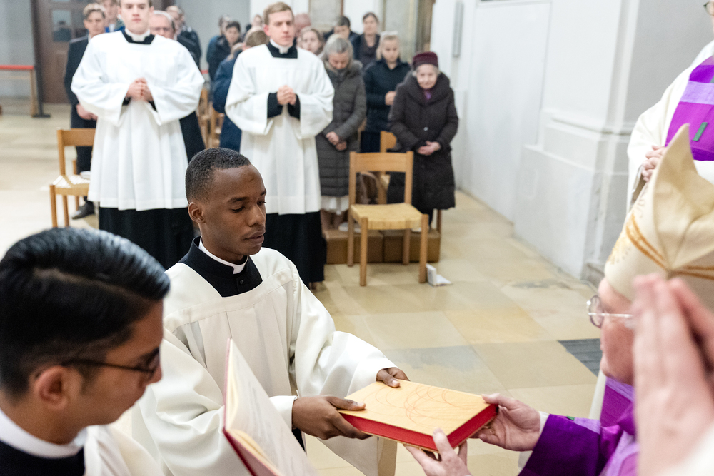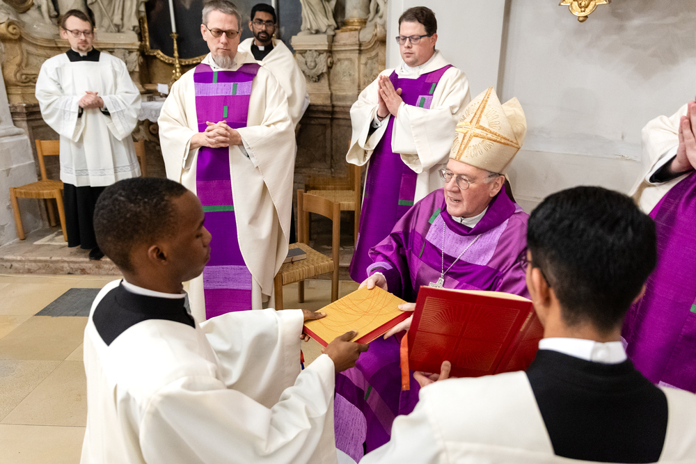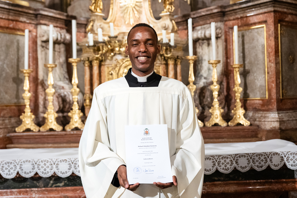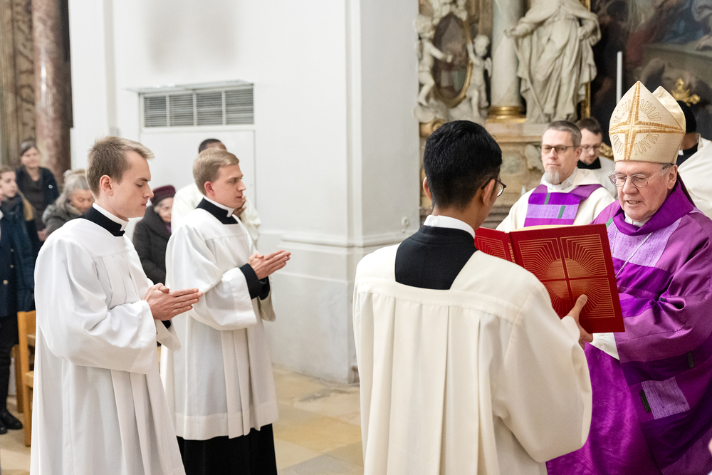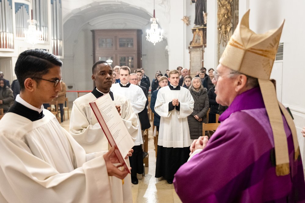 Impressionen der Beauftragungsfeier im Priesterseminar. Dabei wurden Constantin Mucha und Michael Ungrad als neue Akolyten für die Erzdiözese beauftragt. Für die Diözese St. Pölten wurde Michael Chijindum EJIEMEONU zum Lektor beauftragt. Wir waren mit der Kamera dabei.