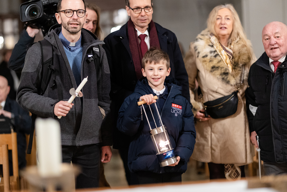 Im Rahmen der Vesper zum Adventempfang für Medienschaffende wurde das ORF-Friedenslicht am Donnerstag, den 12. Dezember 2024, an Christoph Kardinal Schönborn, den Erzbischof von Wien, übergeben. Der neunjährige Matthias Secklehner aus Gschwandt bei Gmunden überbrachte das Licht als Symbol des Friedens in die Kirche des Wiener Priesterseminars. Wir waren mit der Kamera dabei.