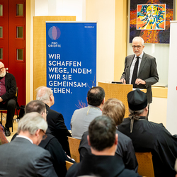 Am Montagabend fand im Curhaus am Wiener Stephansplatz die feierliche Amtsübergabe von Alfons Kloss an den neuen Pro Oriente-Präsidenten Clemens Koja statt, der sein Amt bereits am 1. Jänner 2025 angetreten hatte. Kardinal Christoph Schönborn würdigte dabei die Arbeit der Stiftung, insbesondere ihre Flexibilität in Zeiten ökumenischer Herausforderungen, und betonte die Bedeutung persönlicher Begegnungen für den theologischen Fortschritt. Zudem erinnerte Schönborn an den Gründer von Pro Oriente, Kardinal Franz König, der die Stiftung mit dem Ziel gegründet hatte, Brücken in den Osten zu bauen. Wir waren mit der Kamera dabei.