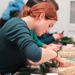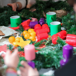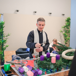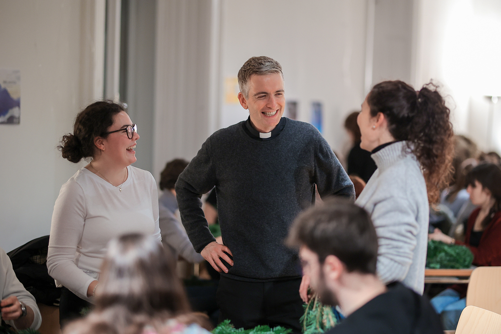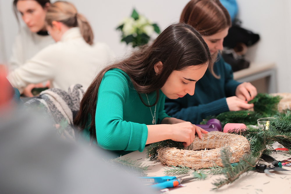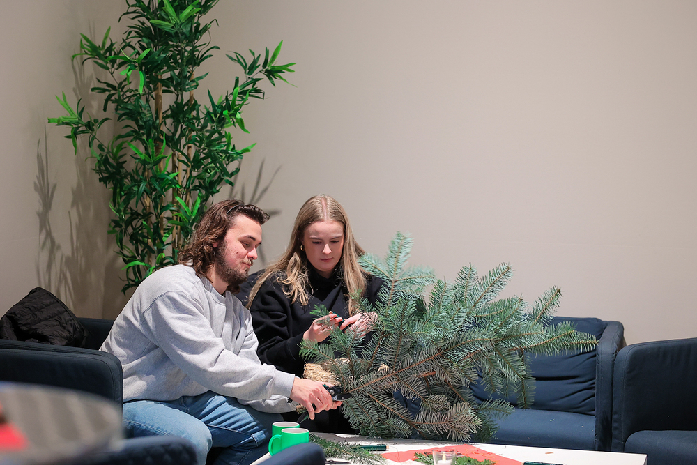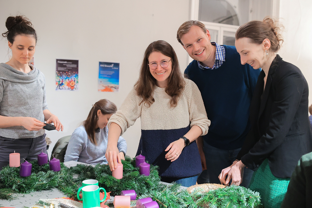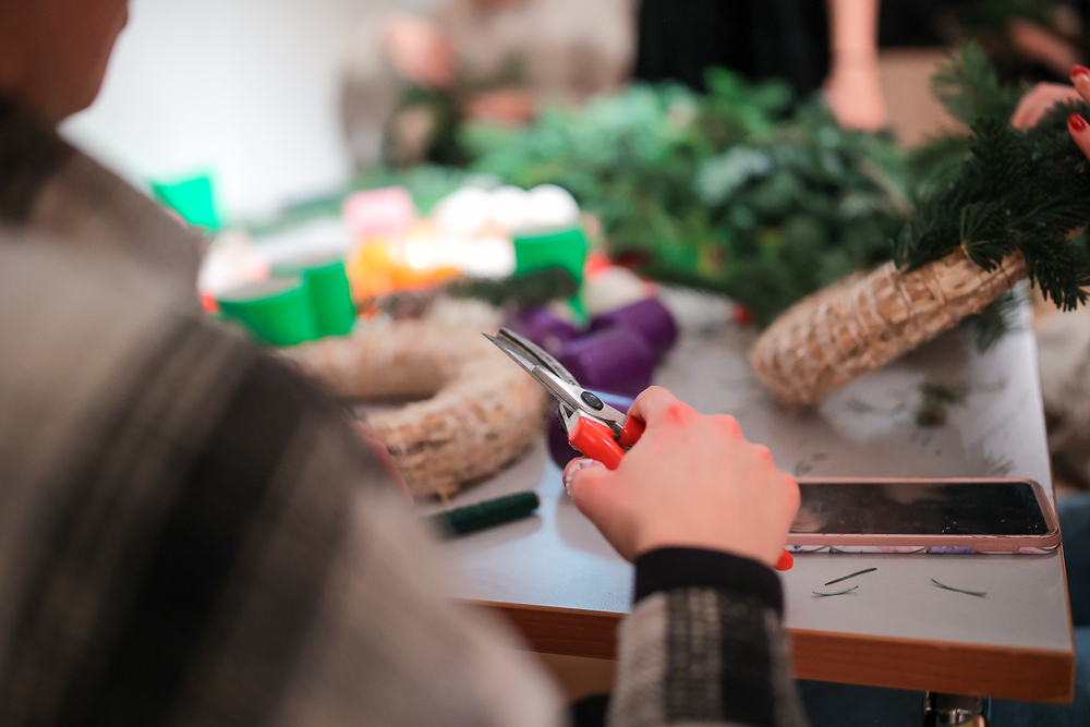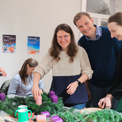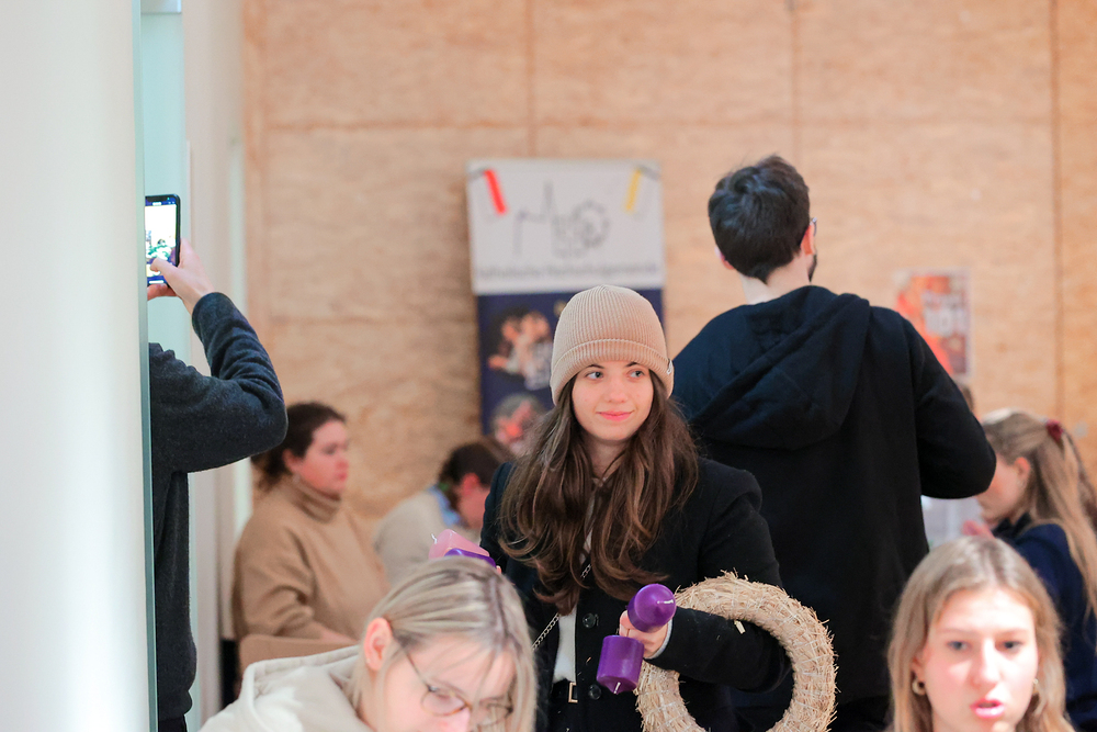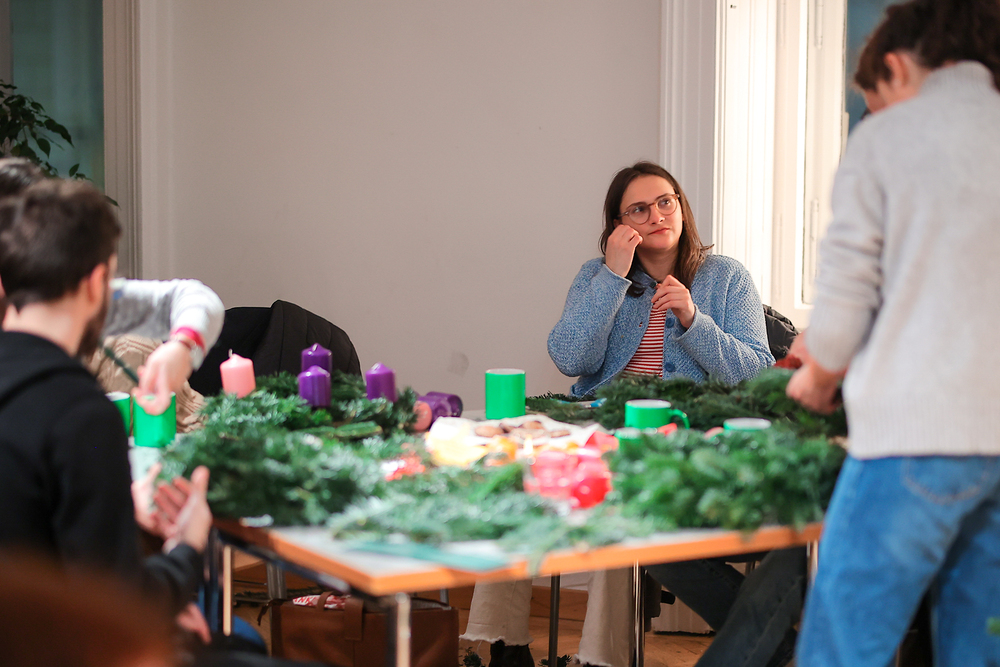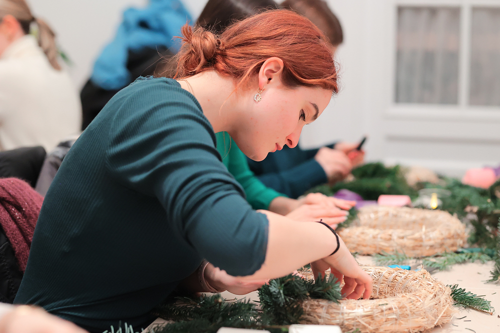 Gefüllt mit Tannenduft und über 160 Studierenden hat in sämtlichen Räumlichkeiten der Katholischen Hochschulgemeinde das beliebte KHG-Adventkranzbinden stattgefunden. Ob kirchenfern oder glaubensbegeistert: bunt durchmischt konnte man plaudern und sich bei Glühwein, Mandarinen und adventlicher Musik auf diese besondere Zeit der Erwartung einstimmen.