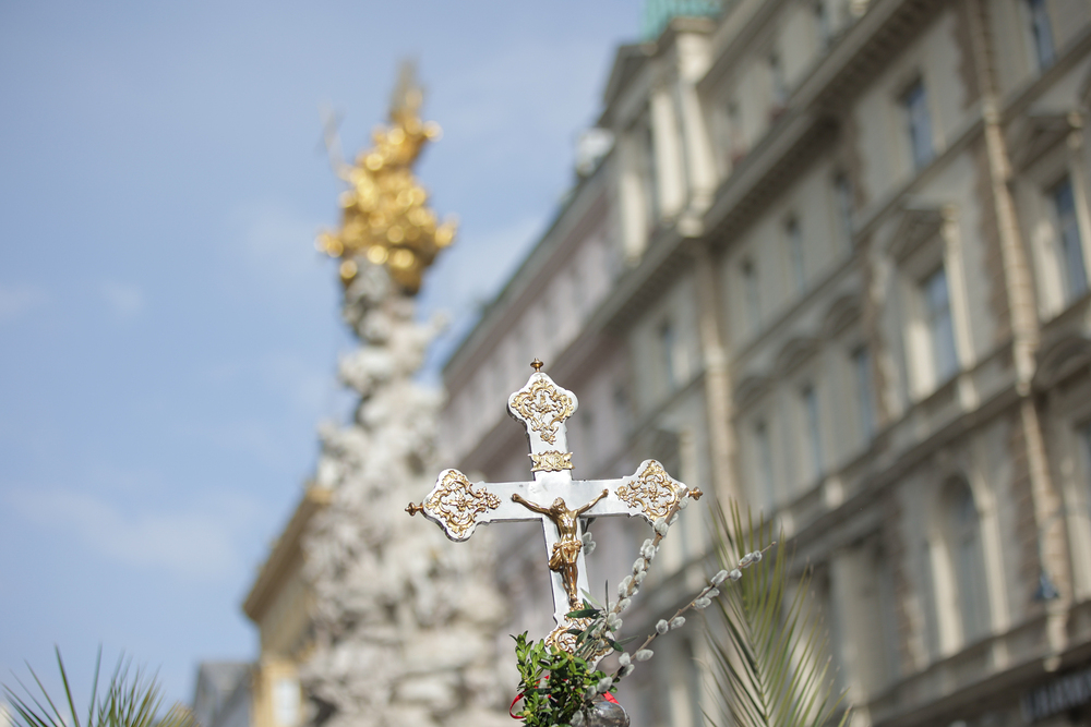 Traditionell werden am Palmsonntag, eine Woche vor Ostern, in der Wiener Innenstadt die Palmkätzchen von Kardinal Christoph Schönborn gesegnet. Die Palme ist ein Symbol des Sieges und steht im Christentum für das ewige Leben. Wir waren mit der Kamera dabei.
