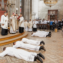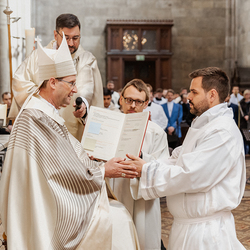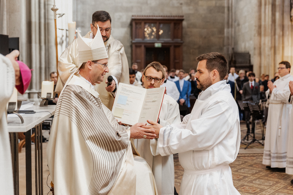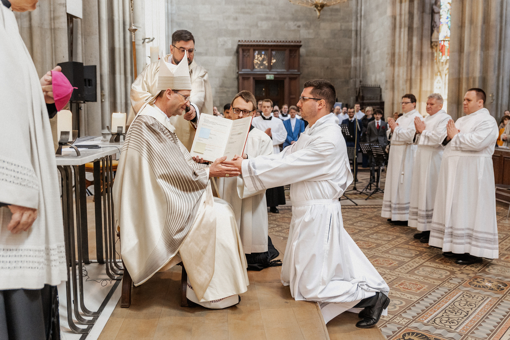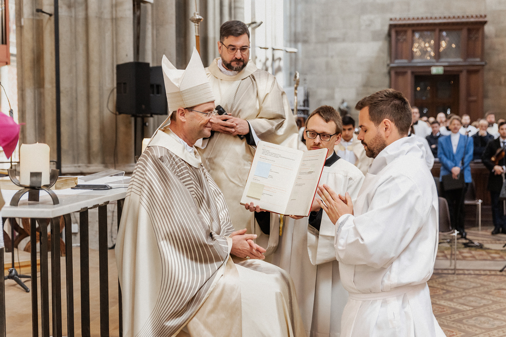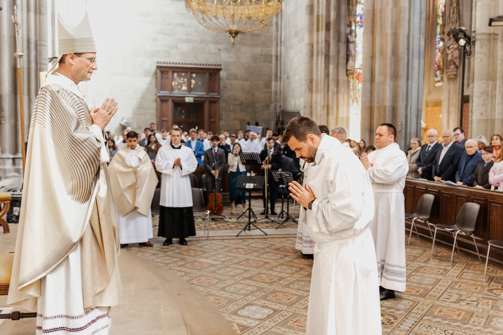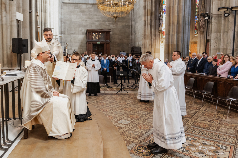 Am Samstag wurden in der Votivkirche in Wien sechs Weihekandidaten zu Diakonen geweiht. Die Weihe spendete Weihbischof Stefan Turnovszky.