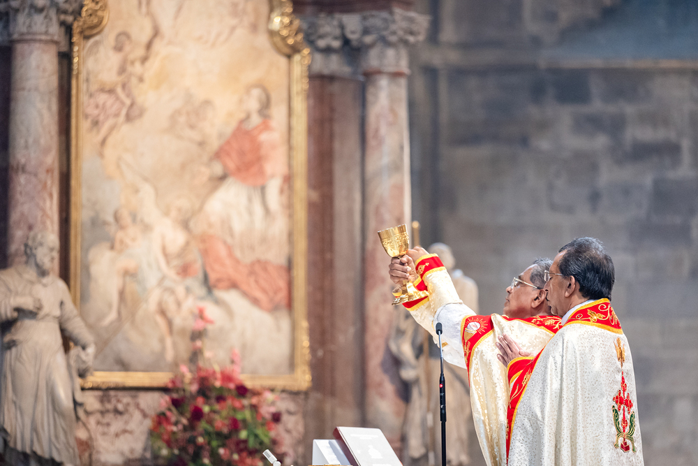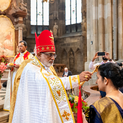 Das Oberhaupt der zweitgrößten katholischen Ostkirche, Mar Raphael Thattil hat am Samstag, den 25. Mai im Stephansdom eine Hl. Qurbana gefeiert.