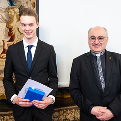 Geehrt wurden die jungen SiegerInnem und FinalistInnen der vierten Olympiade im katholischen Religionsunterricht. In Anwesenheit von Gäste aus Kirche, Wissenschaft und dem Bildungsbereich nahmen die SchülerInnen ihre Preise und Glückwünsche entgegen. Der österreichweite Wettbewerb legte heuer den Fokus auf Körper und Körperlichkeit — und damit auf eine hochaktuelle Thematik jugendlicher Lebenswelten. Wir haben die Verleihung mit der Kamera begleitet.